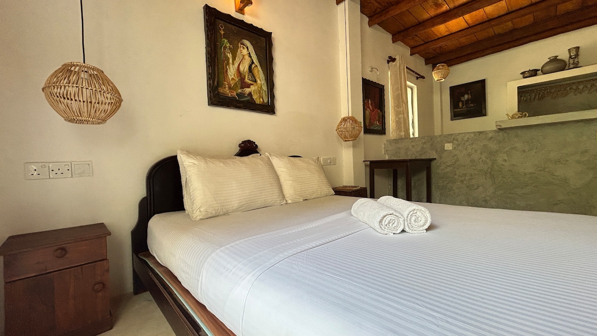 Bask in the serene ambiance of this modern 1st-floor apartment, lovingly hosted by a warm local Sri Lankan family. Relax in a peaceful setting away from busy roads, and admire lush greenery from your balcony. Head to the rooftop terrace for yoga or soak up the treetop views. Located just minutes from Ahangama’s center, the simple yet stylish design promises comfort and privacy, while you enjoy genuine island hospitality.