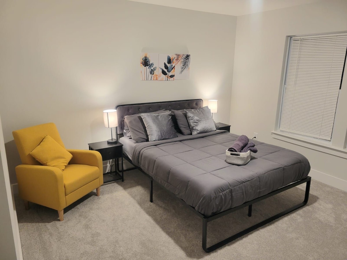 Experience the fun of downtown GVL! Walk the illuminated Main St. Trolley,bike, walk to eateries-breweries-shops-Falls/bridge-trails-theaters/venues & fun. Singles, couples-co-workers-friends-art/music lovers +. Entire 2nd floor. Newly renovated spacious historic loft- 9' ceiling-wood floors-lg glass shower. Relax on private balcony,cook in large kitchen, fast wifi/desk & record player.1300 sq ft.3 beds & luxe bath. SMART TV.Less busy area 1/2 block fr Main St.Sleeps 4.AGES 12+ per safety info