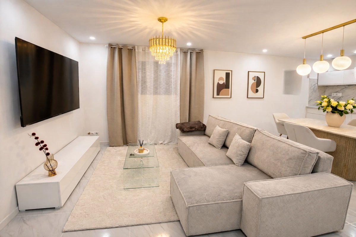Ienirstiet unikālā atmosfērā ar šo 45 m2 dzīvokli. Modernā un krāsainā dekorācija rada dizaineru, mājīgu un rotaļīgu atmosfēru, kas ir ideāli piemērota, lai justos eksotiski, uzturoties mājās. Plaša istaba, kas ideāli piemērota klusām un mierīgām naktīm. Atsevišķa dzīvojamā istaba, kas iekārtota oriģinālā un draudzīgā stilā, ideāli piemērota jūsu atpūtai. OBLIGĀTI ir jāatklāj kinoteātris, kas īpaši paredzēts īstai seansu pieredzei mājās!