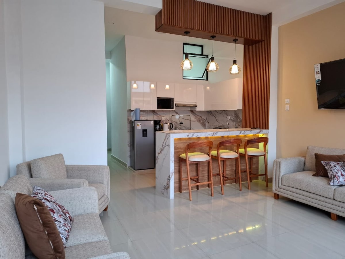 Apartamento acogedor en la selva peruana , ubicado en el centro de la ciudad. Espacio perfecto y con entrada independiente, cerca de restaurantes, hoteles, bancos y a media cuadra de la calle principal (próspero). Con internet rápido para trabajar sin problemas, Netflix , Youtube y con aire acondicionado en todos los ambientes . El apartamento cuenta con todas comodidades necesarias para una estancia confortable .