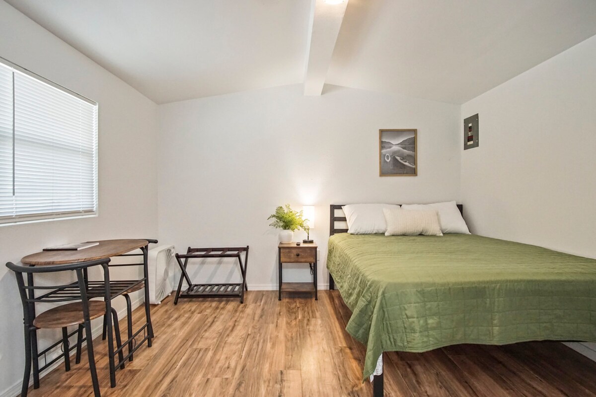 Izbaudiet relaksējošu atpūtu kādā no mūsu 6 pieejamajiem mājokļiem šeit, Sunny Side Stays! Šis unikālais mājoklis atrodas tikai dažu minūšu attālumā no: - Eufaula dambis - Eufaula Cove - Evergreen Marina - Marina 9 - Laivu rampa - Lielais dolāra vispārējais tirgus Šis mājoklis ir praktisks jebkuram viesim! Nāciet baudīt dažas no mūsu papildērtībām, piemēram, mūsu kukurūzas caurumu komplektu, elektrisko grilu, Keurig, divguļamām gultām, WiFi, AC, bezmaksas autostāvvietu, laivu stāvvietu un daudz ko citu! Mūsu sīkmājiņu mājoklis būs vairāk nekā pietiekami, lai jūs varētu pavadīt laiku pie Eufaula ezera!