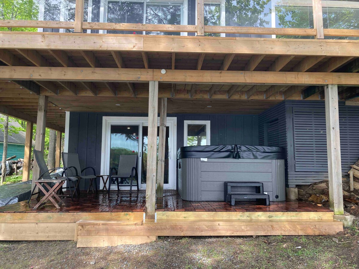 Aizbēdziet uz Aux Box - boutique luksusa namiņu, kas atrodas Muskokas mežā ar mierīgu skatu uz upi. Tas ir izstrādāts komfortam un stilam, un tajā ir apsildāma grīda, pielāgoti skapīši un augstākās kvalitātes papildērtības. Ieejiet savā privātajā Nordic Spa ar saunu, burbuļvannu un aukstu ieniršanu, lai gūtu maksimālu atpūtu. Izbaudiet pilnīgu nošķirtību, atrodoties mazāk nekā 10 minūšu attālumā no veikaliem, vakariņām un Hantsvilas centra šarma. Gaida nevainojams dabas un greznības apvienojums.
