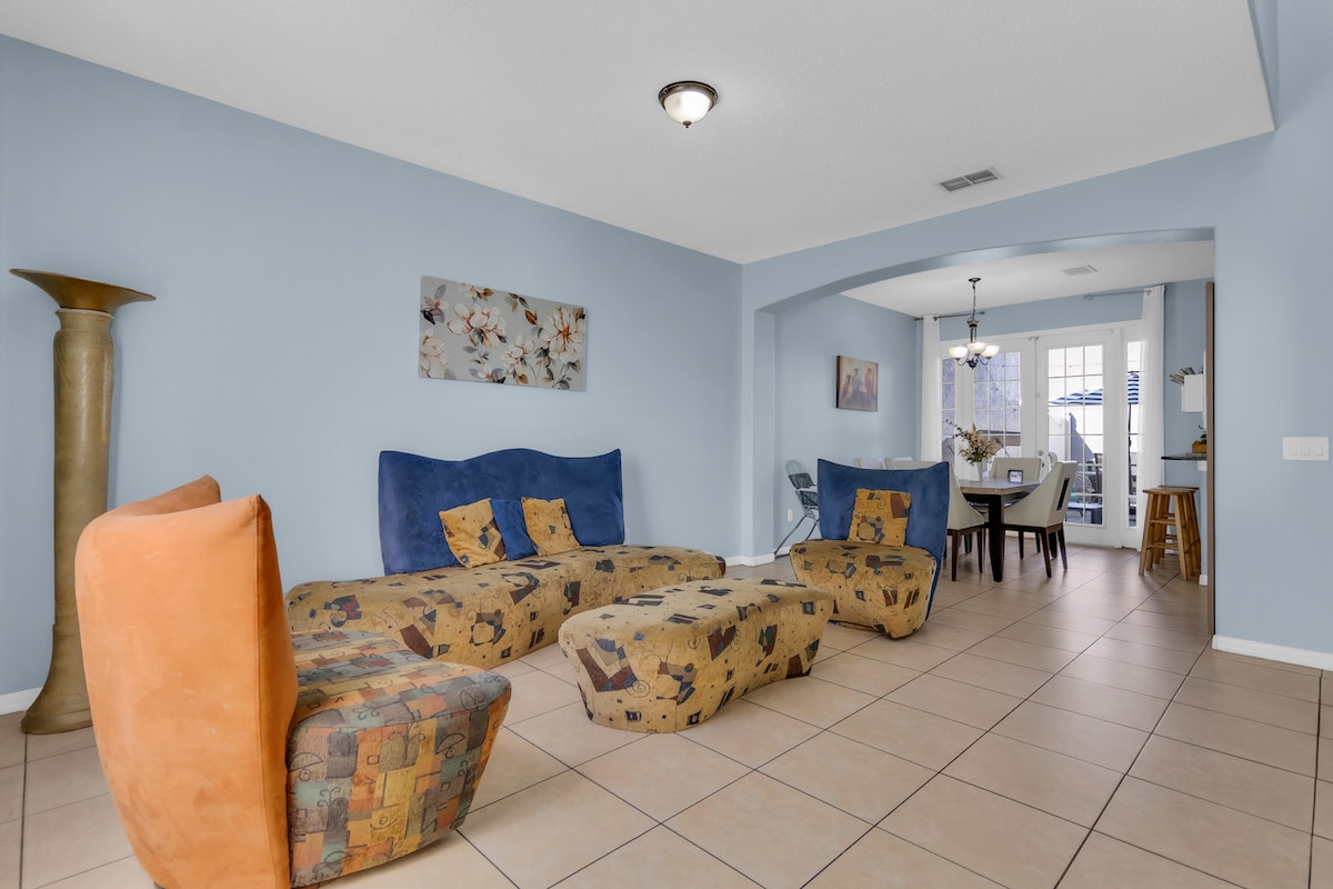 Single-story townhome. A small conservation area serves as a background to the back porch. There is one parking space right in front of the home. It is conveniently located 15 minutes from the Orlando International Airport; 12 minutes from Gatorland, 25 from Walt Disney World, Universal Studios; and 1 hour from Kennedy Space Center and Cocoa Beach. USTA campus 20 minute drive via 417. Eateries, grocery stores, and pharmacies are within a 5 minute drive. 1 room is used for storage (not shown)