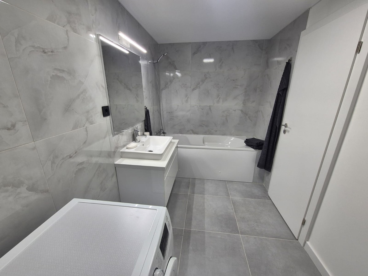Viesmīlīga atmosfēra ļoti klusā vietā tuvu pilsētas centram. Jaunas mēbeles, aprīkota virtuve (plīts, tvaika nosūcējs, ledusskapis, trauku mazgājamā mašīna, trauki un galda piederumi) bez mikroviļņu krāsns, veļas mašīna, gaisa kondicionētājs, viedtelevīzija ar Netflix, ātrgaitas Wi-Fi internets. Viena guļamistaba ar divguļamo gultu un viena guļamistaba ar vienu divguļamo gultu (var atlocīt un pārvērst par divām vienguļamām gultām), iekļauta gultasveļa un dvieļi. Bezmaksas autostāvvieta uz ielas. Pārtikas veikals în pie ēkas.