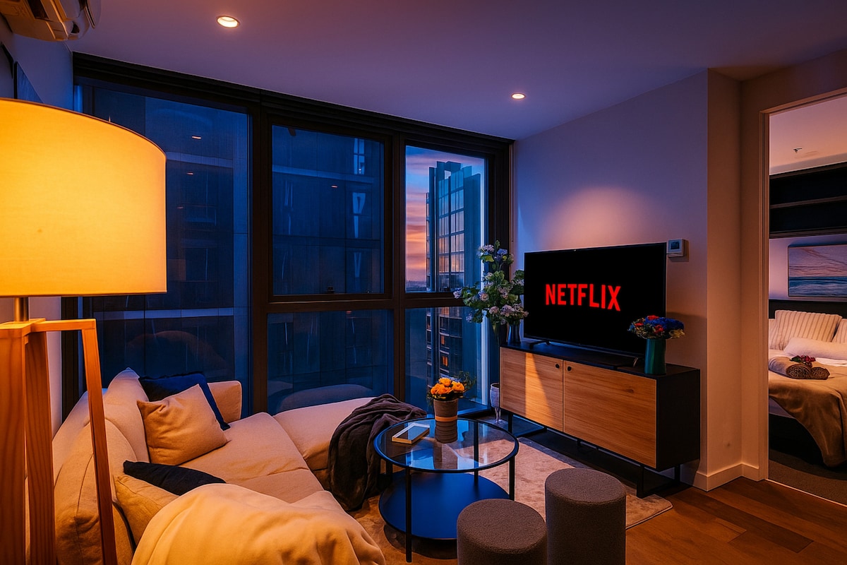 Ne tikai uzturieties — atjaunojiet saikni, pārdomājiet un uzlabojiet savu ikdienu. Amor Condo, kas atrodas 38 stāvos virs Melburnas augstākā dzīvojamā torņa Austrālijā 108, ir luksusa dzīvesstila atpūtas vieta ar plašu skatu uz līci un pilsētu. Pamostieties līdz saullēktam, baudiet saulrietu — tas viss no jūsu privātā balkona. Ideāli piemērots romantiskiem bēgļiem vai koncentrētiem darījumu braucieniem. Kas patīk mūsu viesiem: • Skats uz saullēkta un saulrieta balkonu • Dodieties uz Crown, NGV un vakariņas • Piekļuve baseinam un sporta zālei (noteikumi) • Privāta darba vieta ar panorāmas skatu