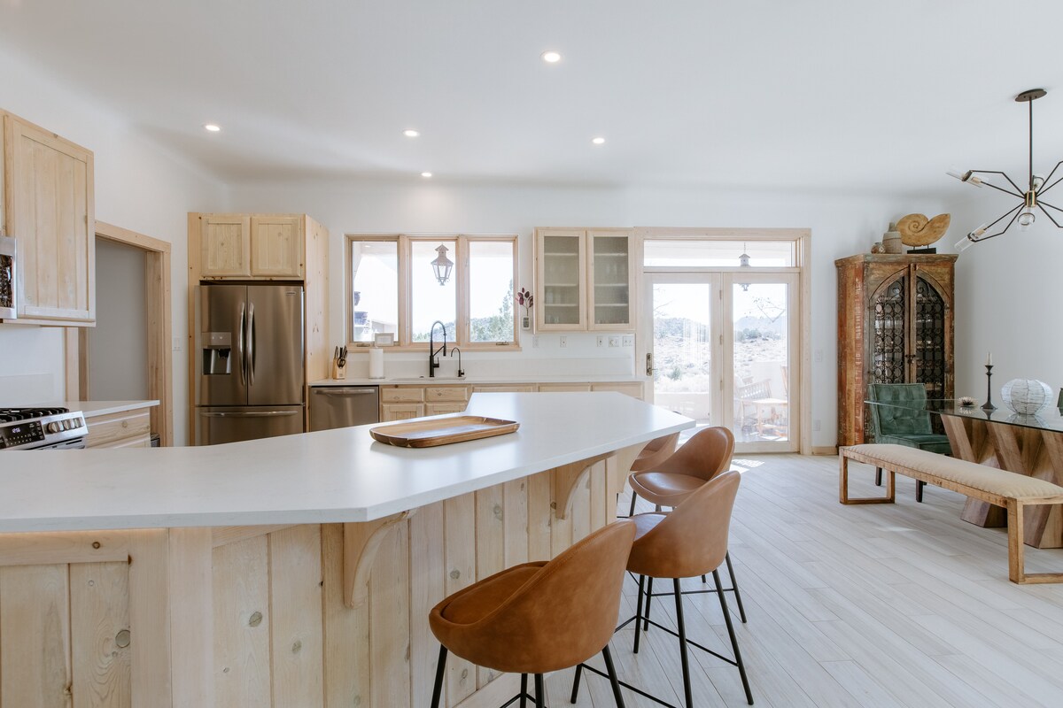 Kalnu riteņbraukšana, pārgājieni, motocikli? Viss ir kārtībā! Mūsu jaunuzceltā 2 guļamistabu privātā māja atrodas Kolorādo Nacionālā pieminekļa pamatnē un ir pārdomāti izstrādāta, lai palīdzētu jums atpūsties un relaksēties. Izbrauciet pa aizmugures durvīm vai dodieties nelielā izbraucienā uz leģendārajām Granddžankšenas un Fritas takām. Kad jautrība ir beigusies, atpūtiniet kājas uz norobežotās terases un vērojiet saulrietu virs pagalmā augošajiem smilšu akmens torņiem.