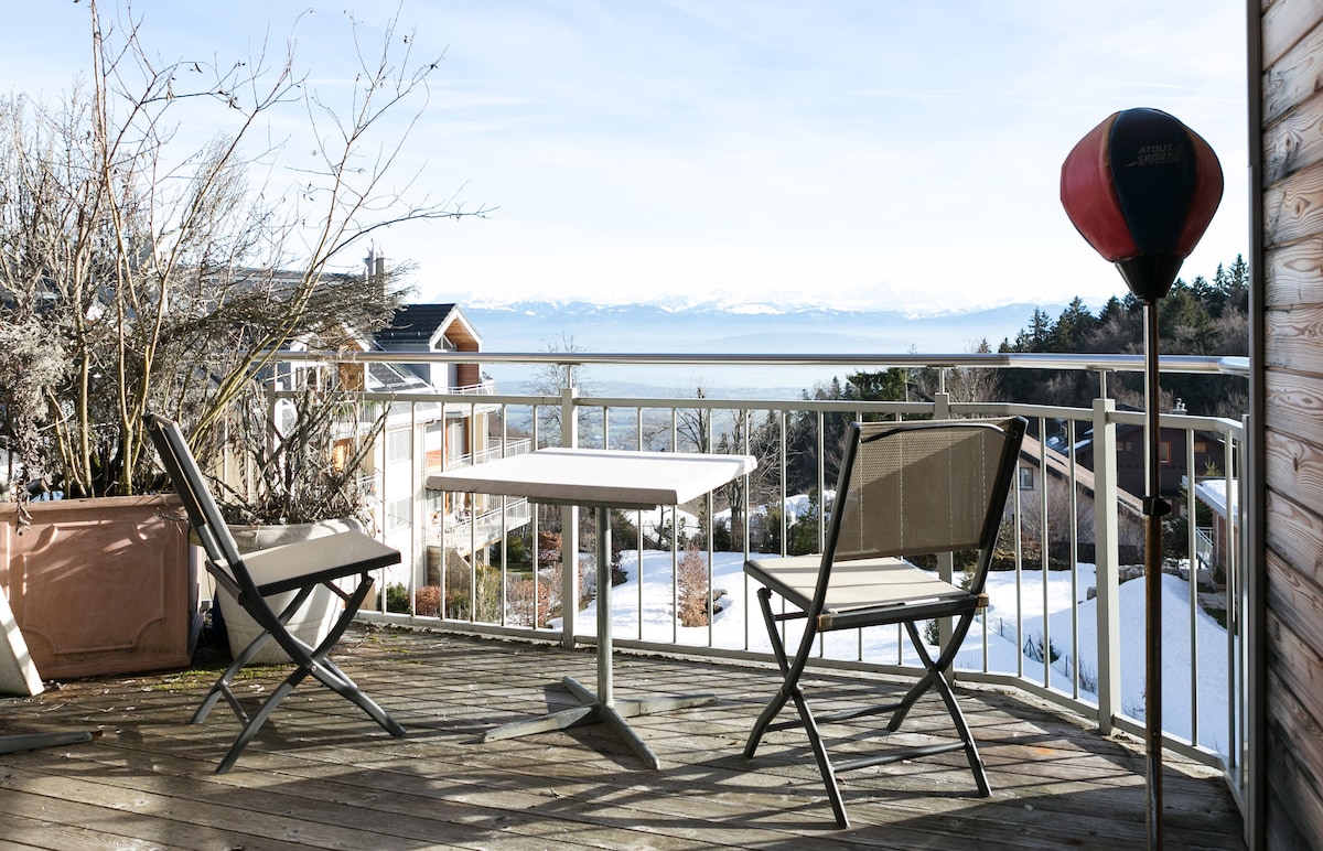 Tā kā dzelzceļa stacija atrodas mazāk nekā 50 metru attālumā no mūsu mājām, St. Cergue ir brīnišķīga vieta pastaigām, riteņbraukšanai, slēpošanai vai vienkārši atpūtai, ko ieskauj elpu aizraujoši skati un svaigs kalnu/meža gaiss. Ar Nyon 12 minūšu un Ženēvu 30 minūšu brauciena attālumā ar automašīnu atrašanās vieta ir lieliska. Dzīvoklis ir jauns, un augšstāvā tas nodrošina elpu aizraujošu skatu uz Ženēvas un Monblāna ezeru. BEZMAKSAS UZLĀDE elektromobiļiem pazemes autostāvvietā!