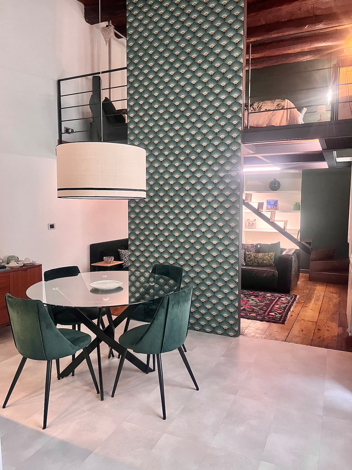Dzīvoklis atrodas 18. gadsimtā celtā ēkā (senajā Romas kvartālā, pilsētas senākajā sirdī) un ļauj apmeklēt pilsētu ar kājām. Tā ir liela bēniņu studija (40 kv. m) ar divguļamo gultu (160x200), dīvāngultu, kas pārveidojama par vienguļamo vai divguļamo gultu (160x200), aprīkotu virtuves sienu un lielu un gaišu vannasistabu, kas aprīkota arī ar veļas mazgājamo mašīnu/ žāvētāju. Arī: lifts, drošības durvis un programmējama apsilde.