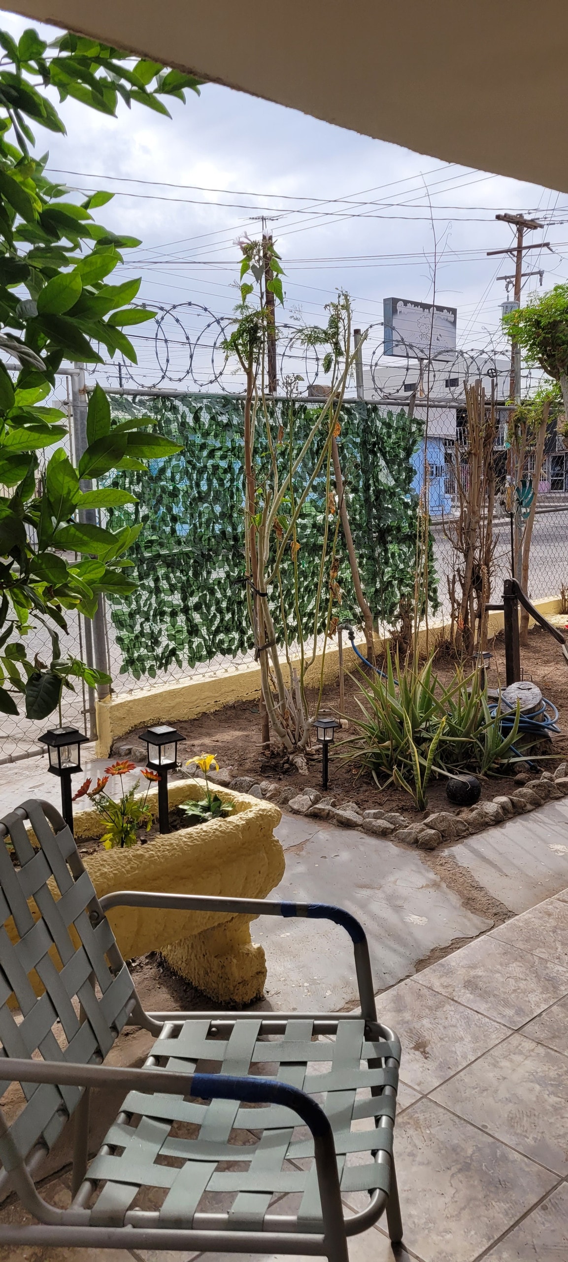 Enjoy a night or a few in just rennovated Mexicali home. Cozy 1 bedroom can fit two, added futons fitting another two making it the perfect 4 person stay. Family friendly neighborhood with community park open to you. Gated community and secure protection with digital entry code to front door and cameras for added protection for you and your family. Perfect location and easy access to a variety of restaurants and convenient stores. Outdoor area with jacuzzi, firepit, etc.