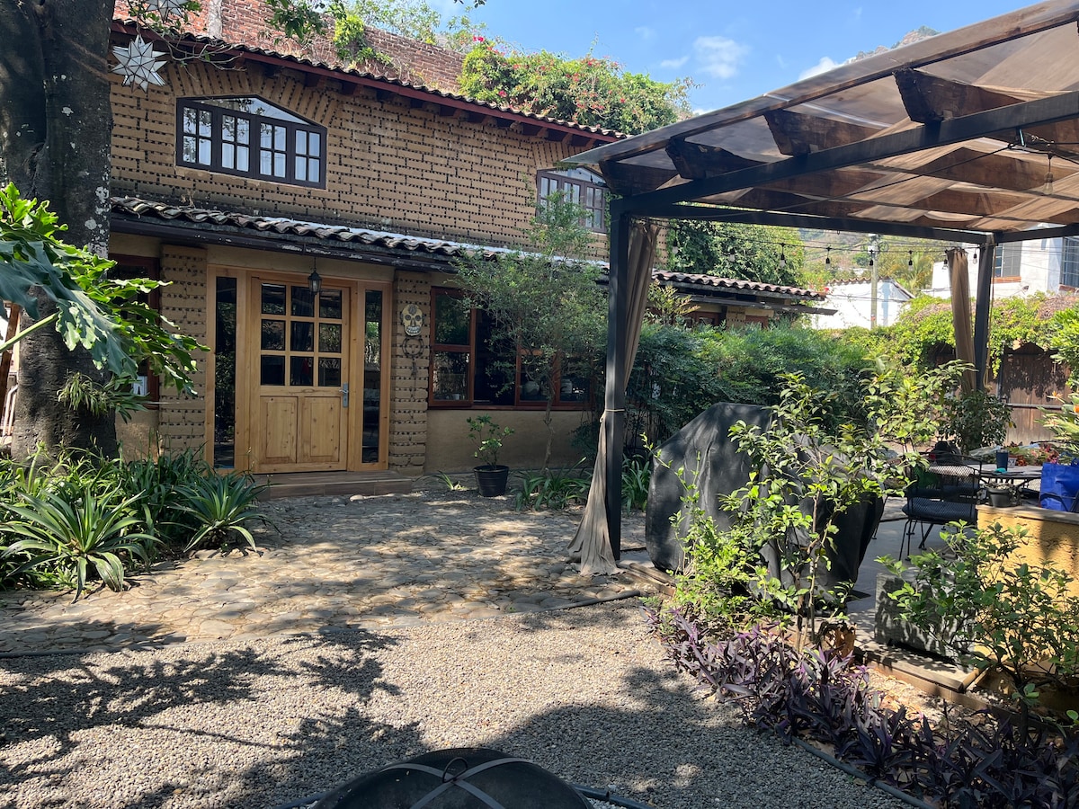 Precioso Chalet en condominio. Con una increíble terraza equipada con mobiliario, hamaca, asador, y área para fogatas, todo esto en un exuberante jardin. Al ser un condominio hay cruce de vecinos. La casa cuenta con espacio suficiente para 6 huéspedes en 3 camas matrimoniales. Además, Hay una hermosa habitación con una cama individual en la torre. Su uso tiene costo extra. ESTÁ DISPONIBLE PREVIA RESERVACION. No hay baño en la torre. La casa tiene TV y WIFI. Somos Pet friendly.