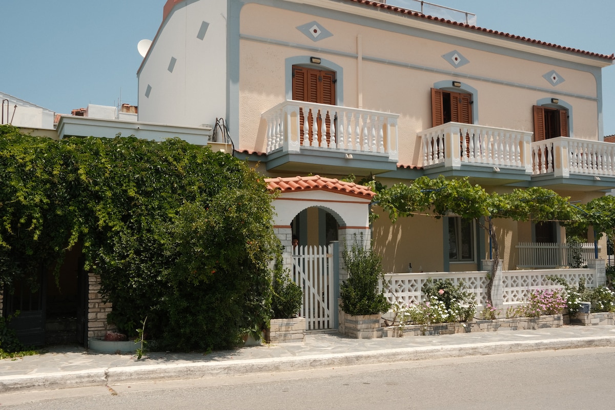 "Cozy home with a spacious private yard and breathtaking sea view. Perfect for up to 4 guests, featuring a fully equipped kitchen and comfortable living space. Enjoy peaceful mornings on the terrace, just minutes from beaches and local cafes. Ideal for couples, friends, or families seeking a relaxing getaway in Samos."