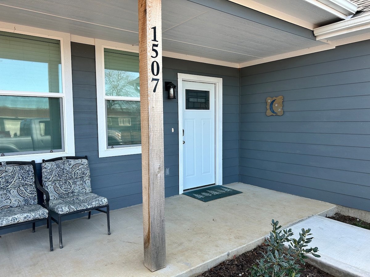 The Blue Moon cottages are new construction. They have beautiful open concept living and dining and two spacious bedrooms. There’s an identical cottage next door so the two make the perfect place to stay for group trips. There’s covered parking and a backyard with a patio. The cottages are just a few blocks north of the parks with hiking, biking and mineral springs and west of downtown and the casino. The Chickasaw Recreation area and Veterans Lake are nearby.