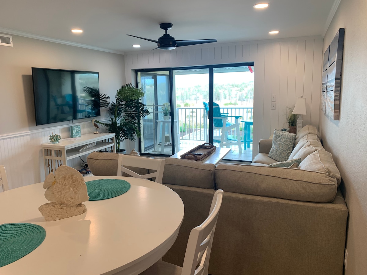 PIRMĀ STĀVA VIENĪBA Bayside Condominium Sleeps 4 - 6 maks. Pastaigas attālums līdz Northside parkam Ejiet uz okeānu , neuztraucieties par autostāvvietu pludmalē NESMĒĶĒTĀJU 1 guļamistaba 1 Vannas dzīvoklis, pirmā stāva dzīvoklis ar āra klāju Šajā ar gaisa kondicionētāju, vienas guļamistabas dzīvoklī ir pilnībā aprīkota virtuve, veļas mazgājamā mašīna/žāvētājs, pilns ledusskapis. Kopā ar karalienes gultu un pilnu gultu 1 Queen Sleep dīvāns viesistabā *JĀBŪT VISMAZ 21 GADU VECAM* bez mīļdzīvniekiem!