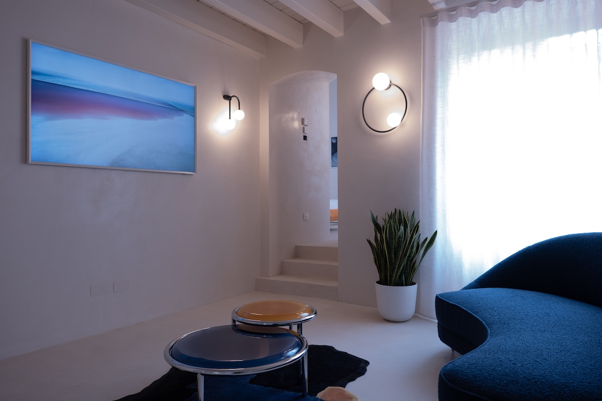 Dodieties uz mākslas un greznības pasauli mūsu boutique viesnīcā Komo vēsturiskajā centrā. Iegremdējieties stilīgā divvietīgā istabā, ko rotā valdzinoša māksla, dizaineru iekārtojums un moderns NFT displeji. Katrs stūris demonstrē rūpīgi atlasītas rotas, radot galerijai līdzīgu piedzīvojumu. Atpūtieties uz elegantām, ērtām mēbelēm un brīnieties par augstas izšķirtspējas ekrāniem, kas demonstrē aizraujošu digitālo mākslu. Izbaudiet nevainojamu mākslas, dizaina un tehnoloģiju apvienojumu šajā neaizmirstamajā telpā.