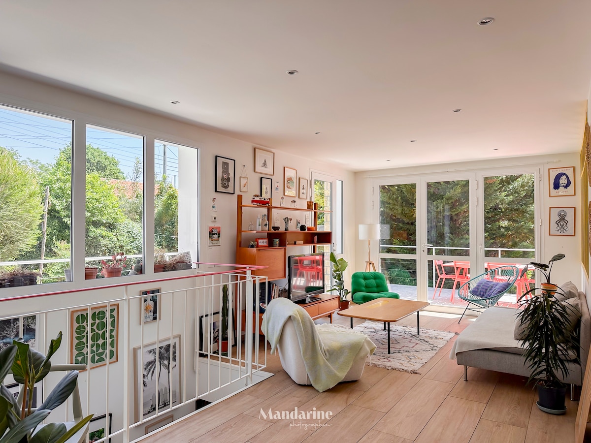 La Hume netālu no centra, mājīga, neatkarīga naktsmītne 37 m2 platībā ar gaisa kondicionētāju, kas atrodas klusā privātīpašumā. Akmens metiens no Chêneraie meža, dzelzceļa stacijas kājām (aptuveni 900 m) un daudzi tuvumā veikali (Ērtību veikals, picērija, maiznīca..... 1 km attālumā atrodas Aqualand, Coccinelle, tenisa klubs, Laser spēļu baseins, kāpšana kokos. La Hume osta un pludmale 1 km attālumā ar austeru būdiņām. 10 minūšu attālumā no Arcachon un 15 minūšu attālumā no okeāna pludmalēm