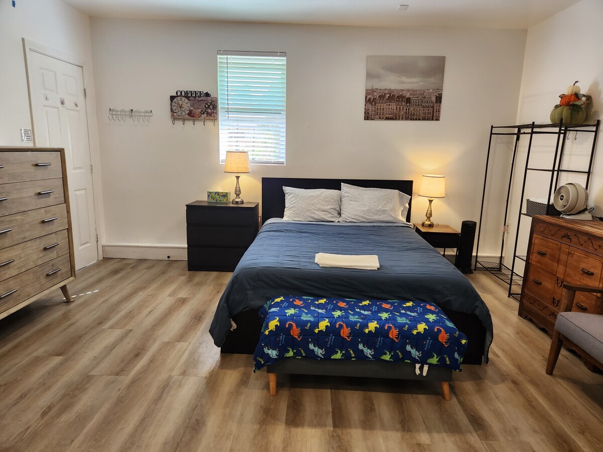 Laipni lūdzam mūsu mājīgajā Sandjego Mira Mesa viesu namā! Šis privātais 600 kvadrātpēdu numurs piedāvā komfortu un ērtības ģimenēm, draugiem un mīļdzīvniekiem. Izbaudiet pavisam jaunu dīvāngultu, kas pievienots 2025. gada 13. septembrī. Tiem, kas strādā uzturēšanās laikā, apartamentos ir īpaša attālināti draudzīga darba vieta ar ātru Wi-Fi un dabisko apgaismojumu, kas ir ideāli piemērota videozvaniem vai produktivitātei, atrodoties ceļā. Pateicoties ātrai piekļuvei 15. automaģistrālei, jūs esat tikai 15–20 minūšu attālumā no pludmalēm, pilsētas centra un Sandjego populārākajiem apskates objektiem.