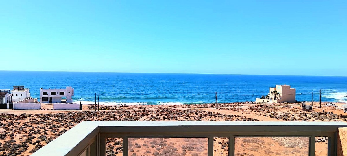Dans le domaine cap daglou en bord de mer a 100 KM sud AGADIR.Appartement securise de 200 m2 spacieux, tres bien équipé, deco boheme. Logement pour 6 personnes maxi, avec 3 belles grandes chambres à coucher dont une suite parentale avec linge et serviettes, 2 SDB, cuisine équipée, WIFI fibre, Télévisions, salon/séjour de 57 m2, terrasse de 44m²,accès à la plage à pied par la résidence. 2 piscines.Terrain de pétanque.Vue mer et montagne. Plage confidentielle. Peche, ballade,quad,equitation...