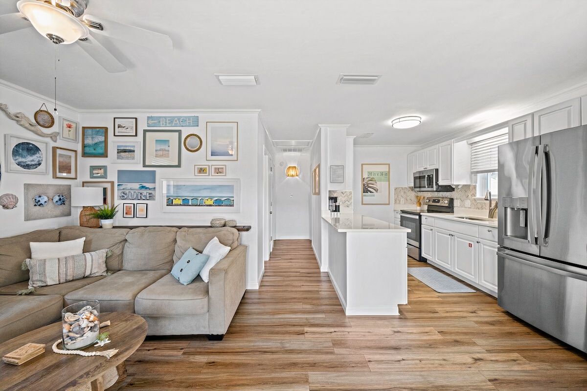 ✔ 4 guļamistabas, 2 vannasistabas – guļvietas līdz 10 ✔ Netraucēts skats uz okeānu no ietinamās terases ✔ Full Putt Putt Course & Corn Hole Under the House ✔ Tikai 50 soļu līdz pludmalei - nekad neatstājiet smiltis ✔ Suņiem draudzīgs mājoklis un pludmale – ņemiet līdzi savu mīluli! (par maksu) ✔ Plaša terase ar Adirondakas un atpūtas krēsliem + āra dušu ✔ Pludmales vagons, krēsli, rotaļlietas un Boogie dēļi ✔ 5 minūtes līdz vietējiem restorāniem, 20 minūtes līdz līča krasta centram Iekļauts ✔ augstais krēsls, "Pack ’n Play", gultasveļa, dvieļi un ziepes