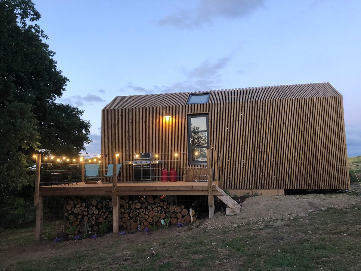 Sīkmājiņa ar privātu burbuļvannu un panorāmas skatu