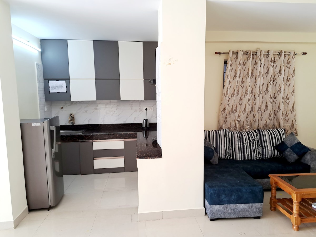 Laipni lūdzam pavisam jaunā 2BHK dzīvoklī, kas paredzēts viesiem, kuri novērtē komfortu, mieru un mājīgu atmosfēru. Atrodas izcilā, bet mierīgā apkaimē, kas ir ideāli piemērota ģimenēm, draugiem un visam citam. •Plašs 2BHK moderns interjers( maiņstrāva vienā istabā) • Trešā stāva dzīvoklis, kas nodrošina privātumu, labāku apgaismojumu un ventilāciju •Labi aprīkota virtuve ēdiena gatavošanai mājās •Balkons un atklātas telpas ar lielu dabisko apgaismojumu un svaigu gaisu • Droša un higiēniska vide • Autostāvvieta jūsu ērtībai
