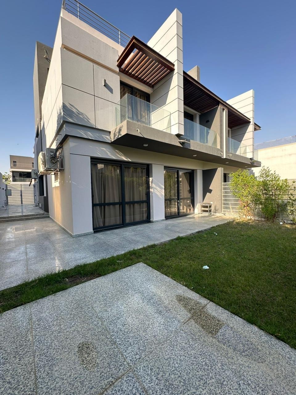 Moderna un stilīga plaša villa + jauka saulaina dārza māja Golf Al Solaimaniyah 15 minūšu attālumā no Sphinx starptautiskās lidostas. Villu ieskauj vairāk nekā 800 m2 privāts dārzs, 10*5 baseins un mežs, kas garantē privātumu un mieru. Pastaigājieties pa oficiālajiem dārziem, atpūtieties pie baseina vai pavadiet dienu lieliskajā jaunajā Ēģiptes muzejā, un Gīzas piramīdas atrodas tikai 25 minūšu attālumā. Villa ir labi savienota, ar satelīttelevīziju/viedtelevīziju un Wi-Fi piekļuvi.