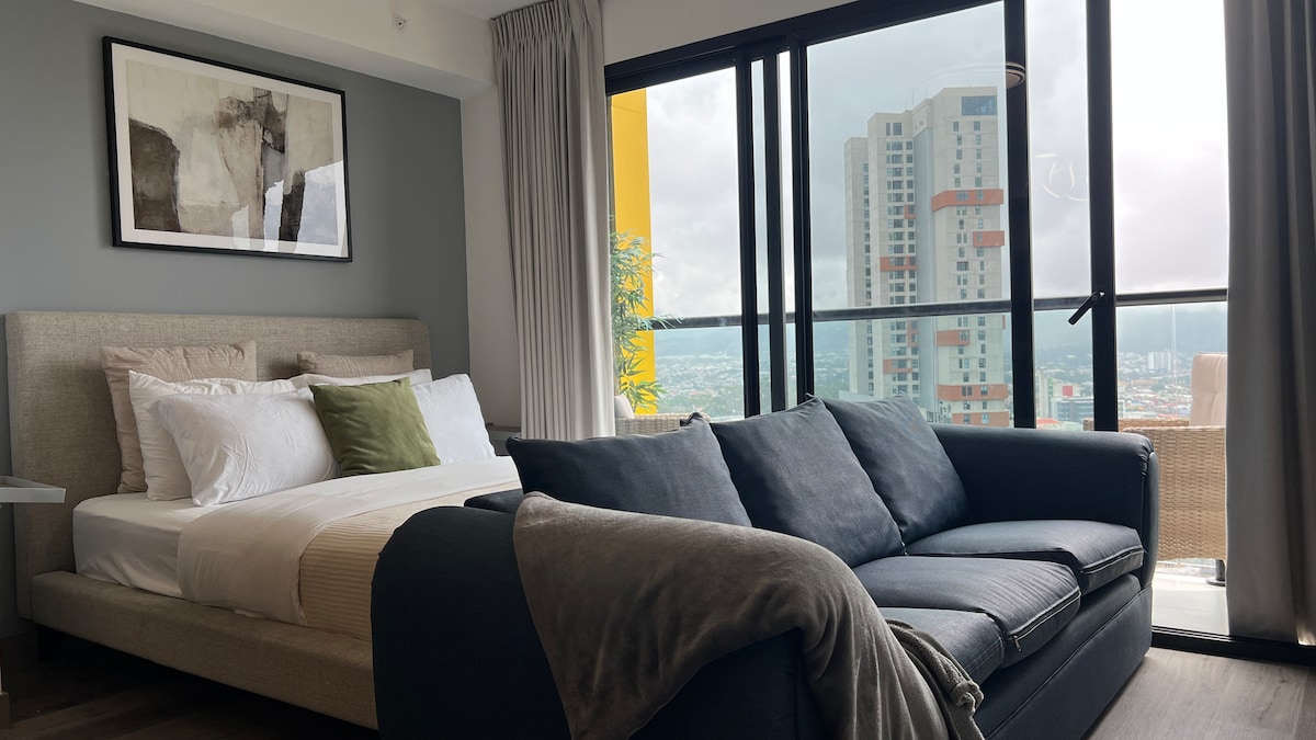Piedzīvojiet uzlabotu dzīvi SER ESCALANTE Elegants 10. stāva dzīvoklis ekskluzīvajā SER Escalante. Aprīkots ar divguļamo gultu, skapi, gaisa kondicionētāju, dīvāngultu un privātu balkonu ar elpu aizraujošiem saulrietiem. Izbaudiet ātru Wi-Fi, privātu autostāvvietu par papildu maksu un augstas klases papildērtības: sporta zāli, kopstrādes telpu, džakuzi uz jumta, atvērtu atpūtas telpu un grila virtuvi. Izsmalcināta atpūta Sanhosē iekārojamākajā apkaimē. Nāciet un atklājiet augstu pilsētas dzīvi, kur greznība atbilst dzīvesveidam.