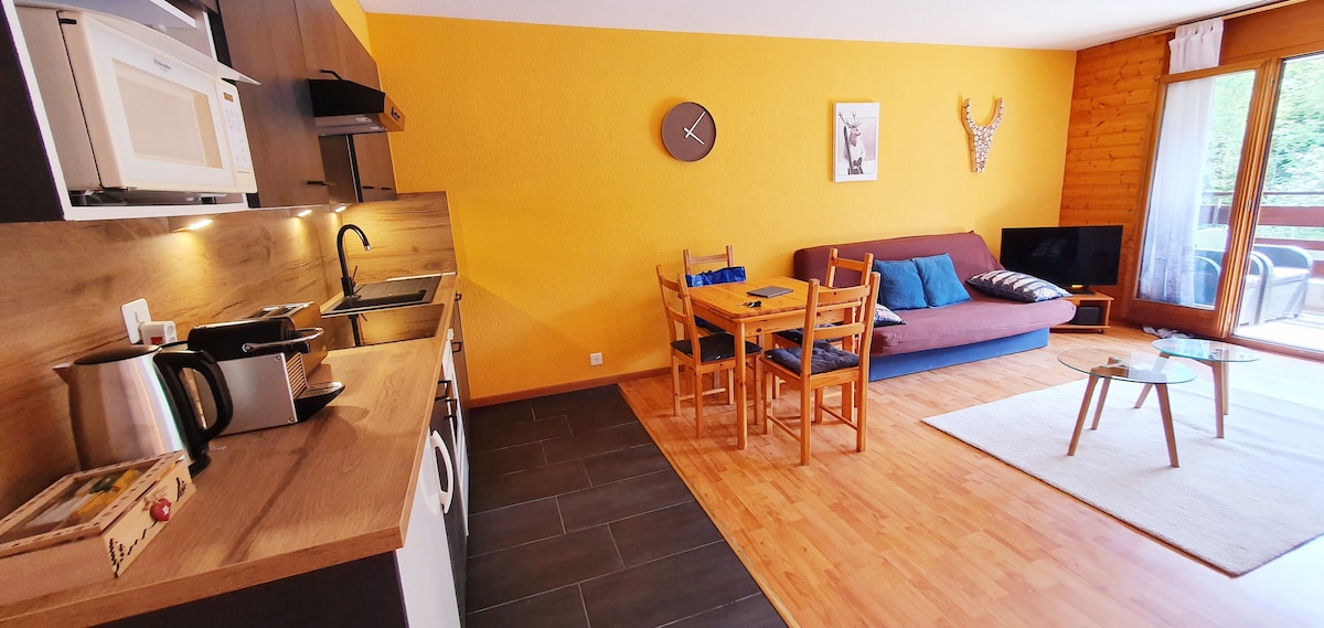 Pilnībā aprīkots dzīvoklis 4 personām klusā dzīvesvietā un netālu no Eiropas lielākās slēpošanas zonas - Portes du Soleil slēpošanas trasēm. Skaisti skati uz līdzenumu un kalniem. Tuvu pārtikas preču veikalam, tūrisma birojam un restorānam. Bezmaksas maršruta autobuss uz slēpošanas trasēm. Segta autostāvvieta vienam transportlīdzeklim. Transfēri no Ženēvas lidostas pēc pieprasījuma.