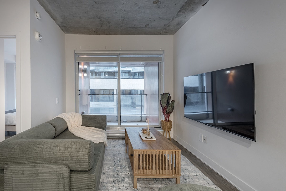 Picture a compact, immaculately kept studio nestled in the heart of downtown Montreal. Its simplicity is its charm: pristine white walls create a canvas for the room's personality to shine. Clever storage solutions tuck away belongings, ensuring every inch is utilized efficiently. Unique touches add character and warmth to the space. With its cleanliness, thoughtful design, and individual flair, this studio offers a haven of tranquility amid the urban hustle and bustle.