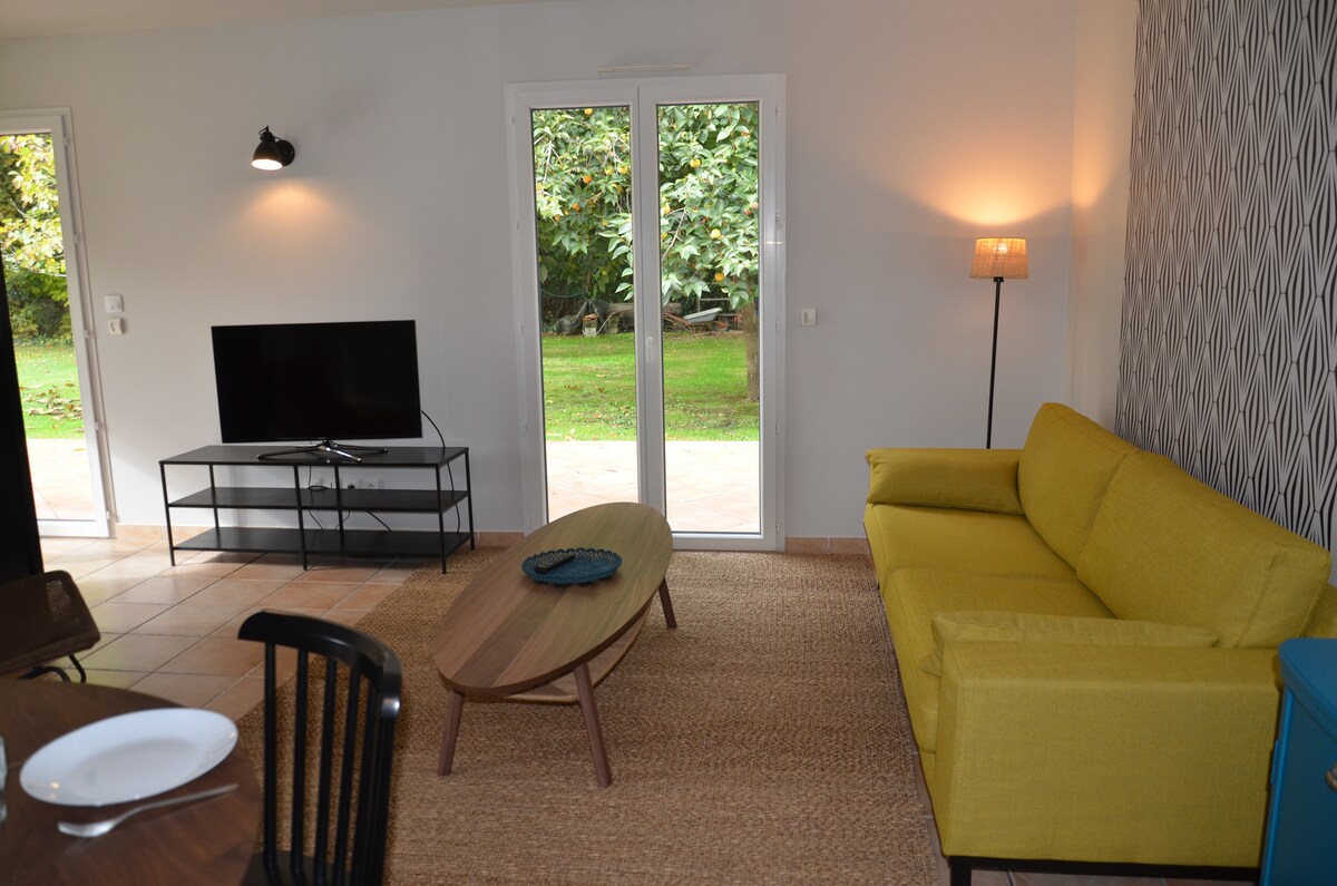 Atpūtieties šajā klusajā un stilīgajā mājoklī. Starp Bordo un Sv. Emilionu, 45 m attālumā no pludmalēm , izbaudiet jaunu, pilnībā aprīkotu, labi izolētu mājokli ar visām ērtībām, plašām istabām un privātu āra dārza terasi. Gultas tiek izgatavotas pēc ierašanās. Jūsu lietošanai ir pieejama gultasveļa. Reģistrēšanās laiks ir elastīgs un autonoms, sākot no plkst. 14:00 Izrakstīšanās līdz plkst. 11:30, ja uzkopšana ir pabeigta . Pastāstiet, kas jums nepieciešams, es klausos.
