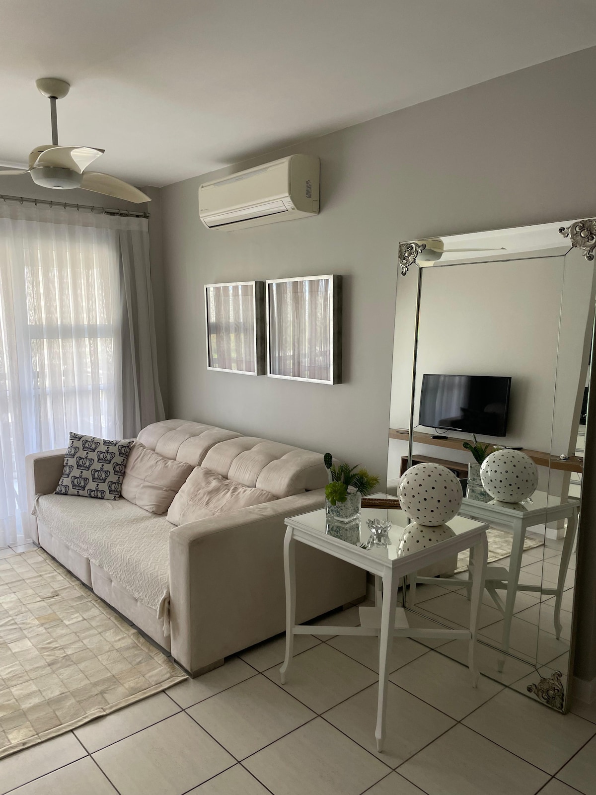 O apartamento é claro, arejado e cuidadosamente preparado para oferecer conforto. Dispõe de duas camas de solteiro que podem ser unidas, formando uma cama de casal, além de TV a cabo, ar-condicionado, armários e cozinha equipada com frigobar, micro-ondas, cafeteira, filtro de água, fogão de indução e sanduicheira. Ideal para quem viaja a lazer ou a trabalho. O condomínio oferece infraestrutura de excelência, com piscina, sauna, academia e restaurante.