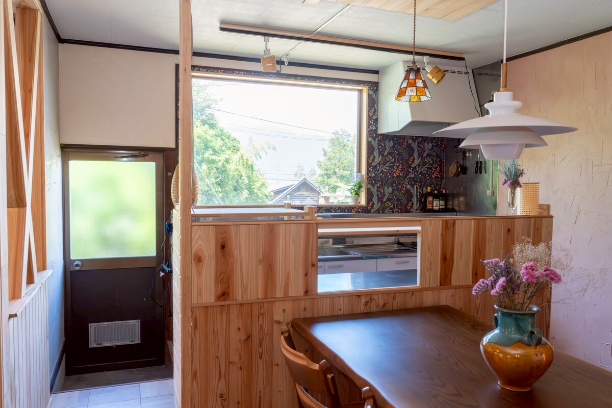 Šis ir privāts īres krodziņš, kas atrodas 30 minūšu brauciena attālumā ar automašīnu līdz Hakubai un ir ērts apskatei Kamikochi un Tateyama Kurobe Alpine Route. Plašs 4LDK, ideāli piemērots ģimenēm un mierīgām pieaugušo grupām. Jūs varat baudīt grilu arī dārzā, un mēs apsolām jums klusu un privātu uzturēšanos. ◻︎ Šis ir atvērts, privāts krodziņš lieliskā vietā, ko ieskauj lauki. Koku siltums ir patīkams, un četru gadalaiku skaistā ainava ir aiz loga, un tas atraisīs jūsu sirdi. Māja ir uzbūvēta pakalnā, un apakšā ir pilsētas un lauku ainava, no kuras paveras brīnišķīgs skats uz Ziemeļu Alpiem. Pavadiet neparastu laiku, vērojot majestātisko ainavu, kas maina jūsu seju no rīta, dienā un naktī. Šis nav tikai mājoklis. Atvērta telpa, kas liks jums aizmirst savu ikdienu, grezns laiks, lai dziļi ieelpotu kluso dabu - īpašs mājoklis, kas atsvaidzina jūsu prātu un ķermeni. Atpūtieties kā savā villā un izbaudiet mirkli, lai patiesi atsvaidzinātos. * Lūdzu, neizmantojiet skaļu mūziku un nerīkojiet skaļas ballītes. ◻︎