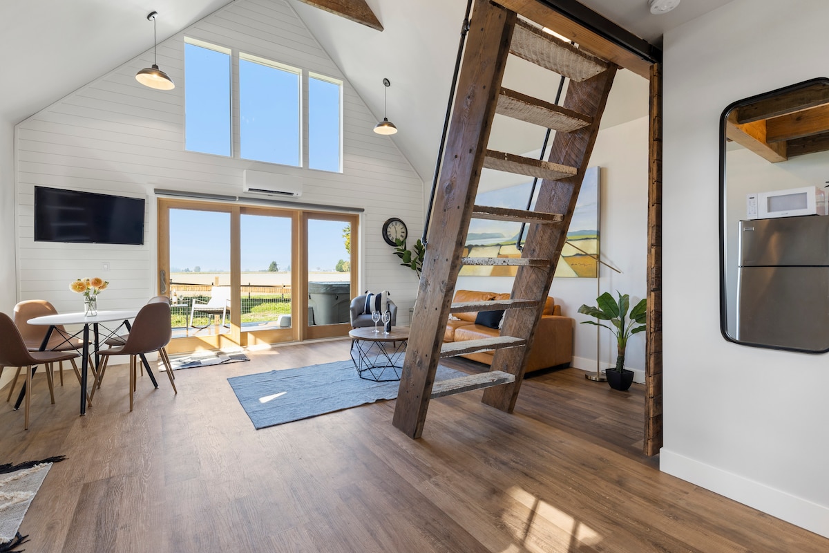 Satriecošs Skagit lauku mājas lofts, balkons un skats!