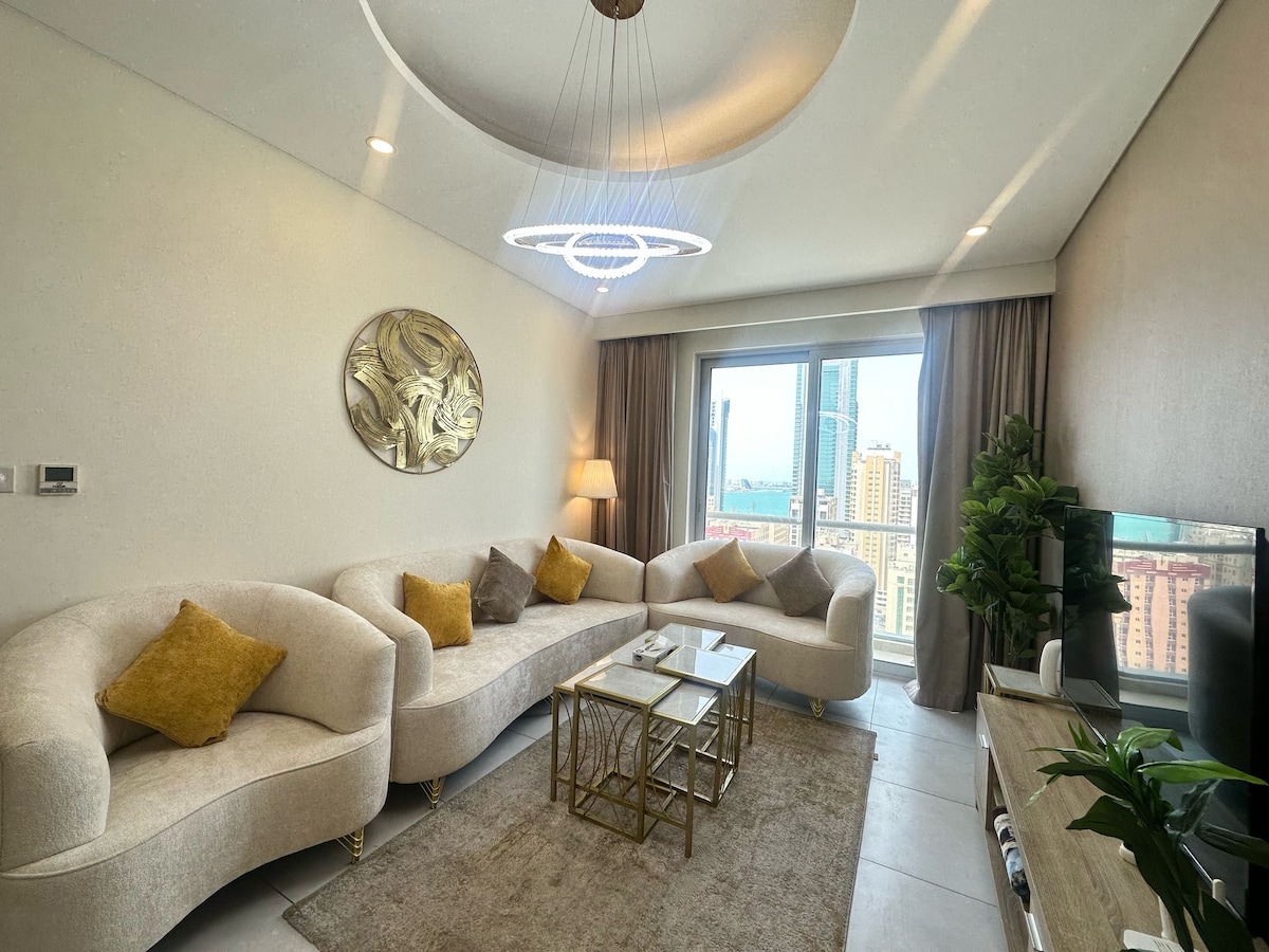 Laipni lūdzam Juffair! Šis stilīgais dzīvoklis ar skatu uz jūru atrodas Sukoon tornī, kas ir kopīgs ar Hilton Hotel Bahrain. Ēka ir pilnībā aprīkota ar diviem peldbaseiniem, džakuzi, pirtīm, basketbola laukumiem un sporta zālēm. Tā ir ideāla izvēle gan darījumu, gan atpūtas ceļotājiem, kas atrodas netālu no iepirkšanās centriem un pilsētas centra - tikai 13 kilometru attālumā no lidostas Tuvumā atradīsiet dažādus gardus restorānus, mājīgas kafejnīcas, unikālus veikalus un daudz aktivitāšu, ko izbaudīt.