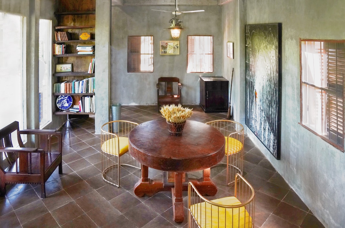 Take it easy at this unique and tranquil getaway. Only 1 hour to the city center. This lovely house and huge fish pond are situated on a hobby farm which includes mango orchard, pineapple garden, various fruit trees and a large fish pond. Solar powered with back up to avoid power interruptions, filtered drinking water, 3 AC systems and a peaceful environment. Perfect for extended stays outside of the city with nearby markets and walking distance to the Mekong River.