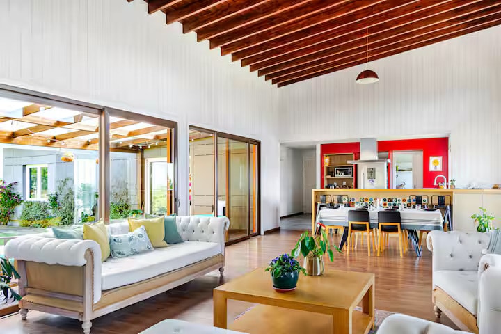 Lleva a toda la familia a este fantástico alojamiento que tiene un montón de espacio para disfrutar la casa y el entorno. Casa de 211 m2, en un barrio privado en medio de la naturaleza, con piscina y jardín privado de 1400 m2, con todo lo necesario para una larga estadía.