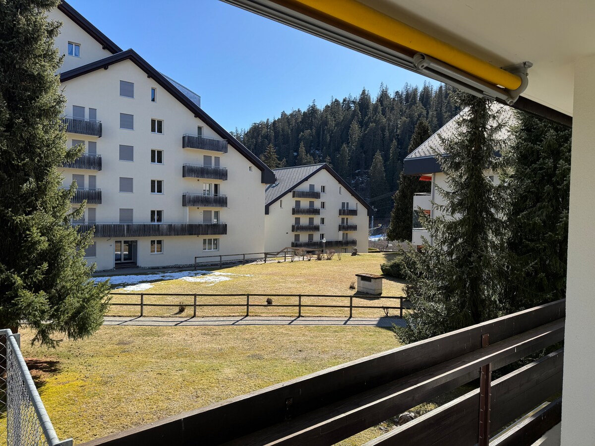Atpūtieties šajā unikālajā rio. 2020. gadā pilnībā renovēts 2 1/2 istabas dzīvoklis, kura interjera dizains ir pilnībā pārveidots. Celta kā lofts no labākajiem materiāliem (Valser Granit, pils parkets, daudz vintage koka, brīvi stāvoša vanna, čuguna kamīns atvērts no abām pusēm, dizaina armatūra). Ar aizsargātu terasi un dārzu. Saulaina, klusa vieta. Privātmājas ieeja, pirts piebūvē. Slēpot iekšā, slēpot ārā vai slēpot autobusu var sasniegt trīs minūtēs.