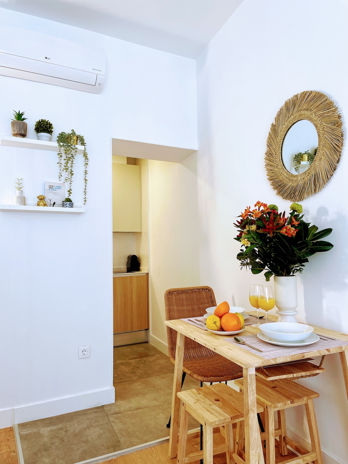 Gaišs un mājīgs lofts Malasaņas sirdī, vienā no Madrides dinamiskākajiem un radošākajiem rajoniem. 40 m² platībā, ar augstiem griestiem un atklātām koka sijām, tajā valda silta, raksturīga atmosfēra. Tajā ir pilnībā aprīkota virtuve, dzīvojamā zona ar dīvānu, ērta gulta un kompakta vannasistaba, ko agrāk izmantoja fotosesiju laikā. Sākotnēji mana fotostudija saglabā savu atvērto plānojumu, māksliniecisko garu un unikālo šarmu, kas ir ideāli piemērots pāru atpūtai.