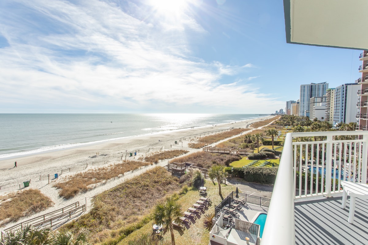 STŪRA DZĪVOKLIS ar LOGIEM NO GRĪDAS LĪDZ GRIESTIEM! LABĀKIE okeāna piekrastes un piekrastes skati Mirtas pludmalē ar brīnišķīgiem saullēktiem un saulrietiem. Pilnīgi JAUNAS GULTAS! Jaunas ierīces un cietkoksnes grīdas! Tieša Oceanfront ☀️ Prime atrašanās vieta ☀️ Tikko atjaunoti ☀️ pakāpieni līdz pludmalei ☀️ 2 balkoni ☀️ 2 guļamistabas ☀️ 2 vannasistabas ☀️ W/D dzīvoklī ☀️ Papildērtības ☀️ Autostāvvieta ☀️ Plaši ☀️ baseini ☀️ Sporta zāle ☀️ Pilnībā aprīkota virtuve Ejiet uz restorāniem, 1 jūdzes gājiena attālumā no SkyWheel, netālu no Brodvejas pie pludmales.