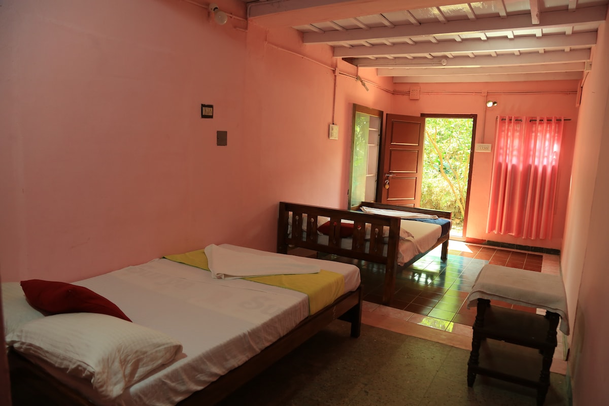 The Little Flower estate is a garden nestled in the woods of south Coorg. We have two cottages. Cottage #1 has two bedrooms & a common verandah. It can accommodate up to five guests. The cottage faces the estate, gardens and fields. Cottage #2 has a large living with two bedrooms. Up to five guests can be accommodated. The living room faces the bonfire and yard, the tank and the Lakshman Theertha river. However, the stay will only be given out to one party of guests at any given time.