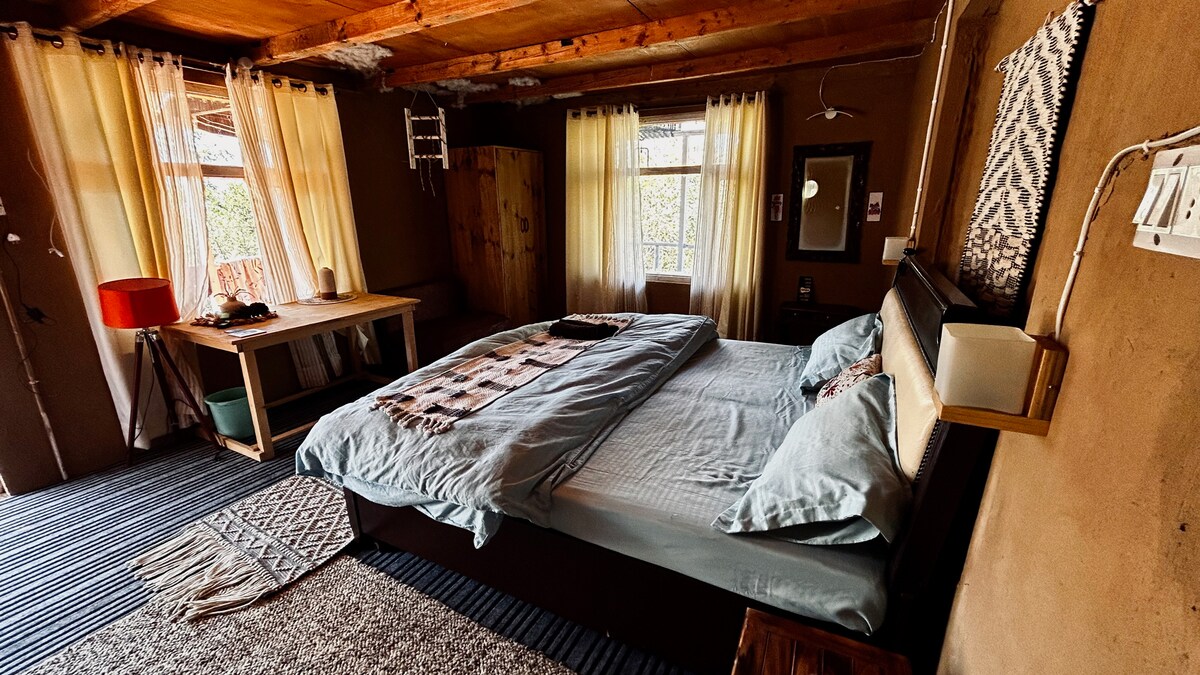Kalnu māja, kas atrodas ābeļdārzā ar 2 īpašām viesu istabām, kurās 1 istaba ir piestiprināta ar virtuvīti un higiēniskām vannasistabām, un 1 istaba ir laba izmēra guļamistaba. Mūsu domēns ir neaizmirstams skats uz kalniem, mierīga atrašanās vieta, govs piens un mierīga apkārtne. Mūsu māja ir aprīkota ar visām pamatērtībām un vispiemērotāko miera meklētājiem Himalajos un īpaši grāmatu mīļotājiem, meditācijas praktiķiem un putniem.