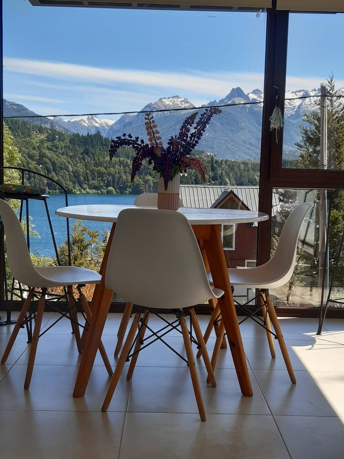 Casa Huenu is perched high overlooking Nahuel Huapi lake and the surrounding mountains. Sit back and enjoy the homey escape with all the modern cons. This ground-floor 1 bedroom apartment, suitable for 2 - 3 people but with beds for 4, is located in the residential neighborhood, Belgrano with the town easily reachable on foot. It has a high speed wifi and a table with a view that can be used as a workstation.