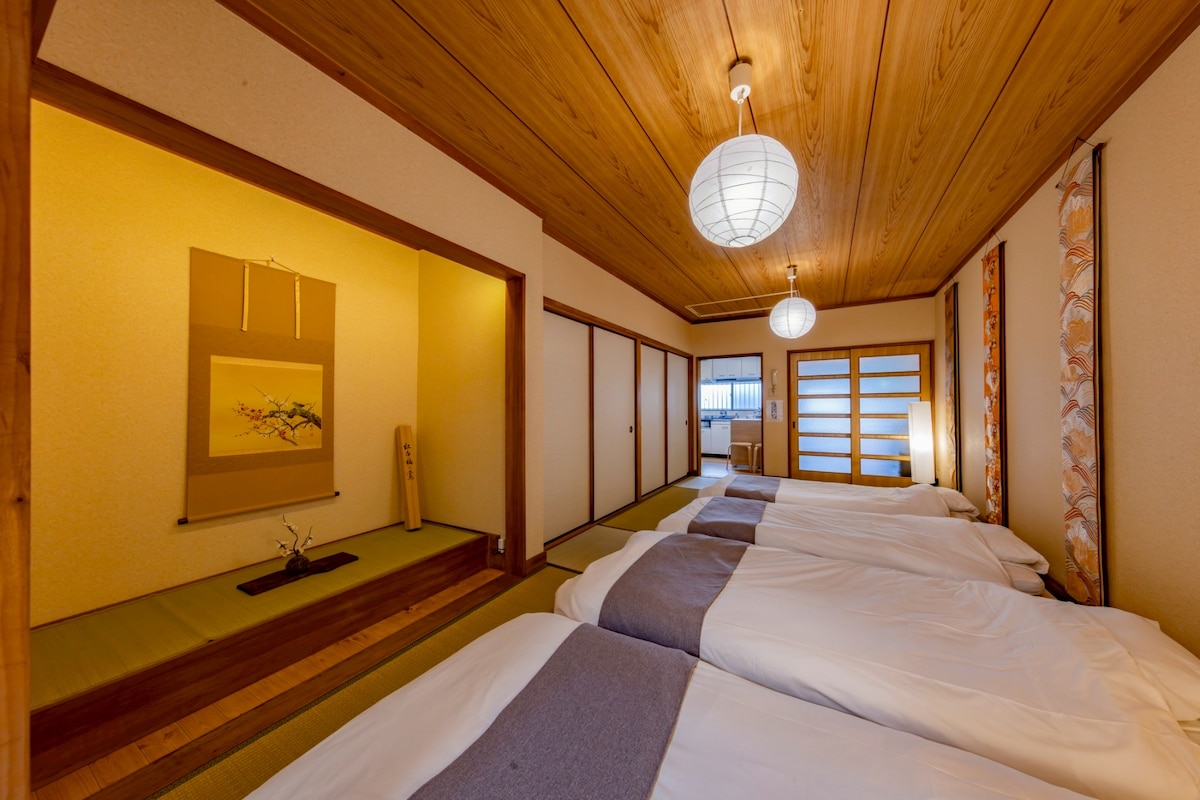 Tradicionālākā apkaime Japānā, japāņu tradicionālā mājsaimniecība.5 minūšu gājiena attālumā atrodas Tengachaya stacija un Hanazonocho stacija - divas metro stacijas.36 minūtes ar vilcienu no Tengachaya stacijas līdz Kansai lidostai.Atvediet visu ģimeni uz šo brīnišķīgo mājokli, kurā ir daudz vietas un rīcības. Mājai kopā ir trīs stāvi ar 4 istabām, 2 vannasistabām, 2 tualetēm.Pirmajā stāvā ir 1 istaba, 1 vannasistaba, 1 tualete, 1 veļas mazgātava.Aprīkojums: 1, izlietne (zobu birste, zobu pasta, roku mazgāšana).2, vannasistaba (vanna + duša, šampūns, kondicionieris, ķermeņa ziepes, vannas dvielis, sejas dvielis, fēns).3. Veļas mašīna (mazgāšanas līdzeklis, mīkstinātājs), žāvētājs, gludeklis.4. Tualetes (viedās tualetes) Otrajā stāvā ir japāņu stila tatami istaba, viesistaba un ēdamistaba, tualete.Aprīkojums: 1, Wi-Fi. 2, viedā virtuve + ledusskapis + mikroviļņu krāsns + elektriskā tējkanna + rīsu vārītājs.3. Indukcijas rokas krāni. Trešajā stāvā ir 2 istabas un 1 dušas telpa.