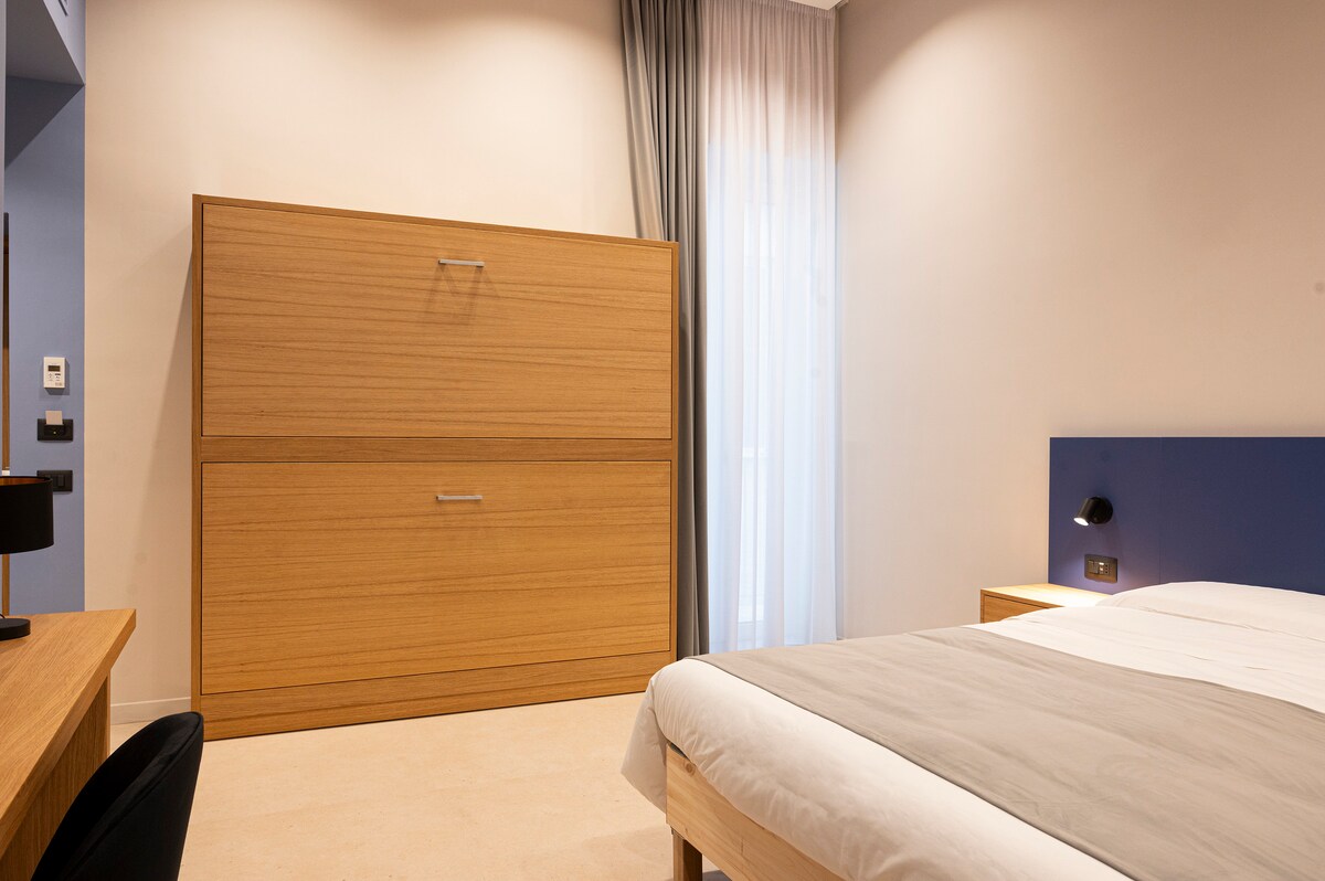 Šī ļoti lielā un mājīgā telpa aptuveni 20 kvadrātmetru platībā atrodas klusajā ēkas spārnā, senā klosterī, tagad Art Hotel. No istabas, kas ir aprīkota ar divguļamo gultu un visām ērtībām, paveras daļējs skats uz Neapoles pilsētu. A la carte restorāns jūsu rīcībā, panorāmas terases, bāri un peldbaseins ( par piemaksu)
