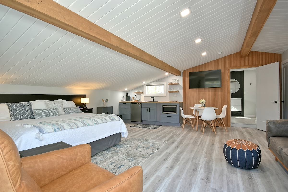 Laipni lūdzam Graystone Brewing 's Into the Woods Suite. Izbaudiet greznu apartamentu apdari pašā Frederiktonas centrā, vienlaikus izbaudot Greistonas alus darīšanu tieši blakus. Piedāvājot unikālu atpūtu mežā - šis apartaments noteikti atbildīs jūsu vajadzībām - vai tas būtu prieks vai bizness. Pabeidziet dienu ar bezmaksas alu, kas atrodas bāra ledusskapī, un dāvanu karti 20 ASV dolāru apmērā mūsu alus darītavai.