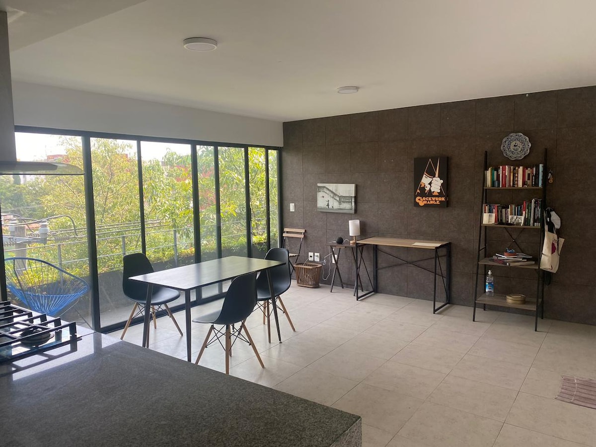 This beautiful and renovated penthouse is the best option for short or long stays. Enjoy the two areas that we offer you. One area is for the bedroom, bathroom and a cozy studio for read and relax and the other area is for the kitchen and living room. You will be able to enjoy the private terrace meanwhile you rest in the hammock or cooking in the bbq with amazing views from the city. This place is quiet and calm and has everything and more for enjoying a pleasant stay in the city