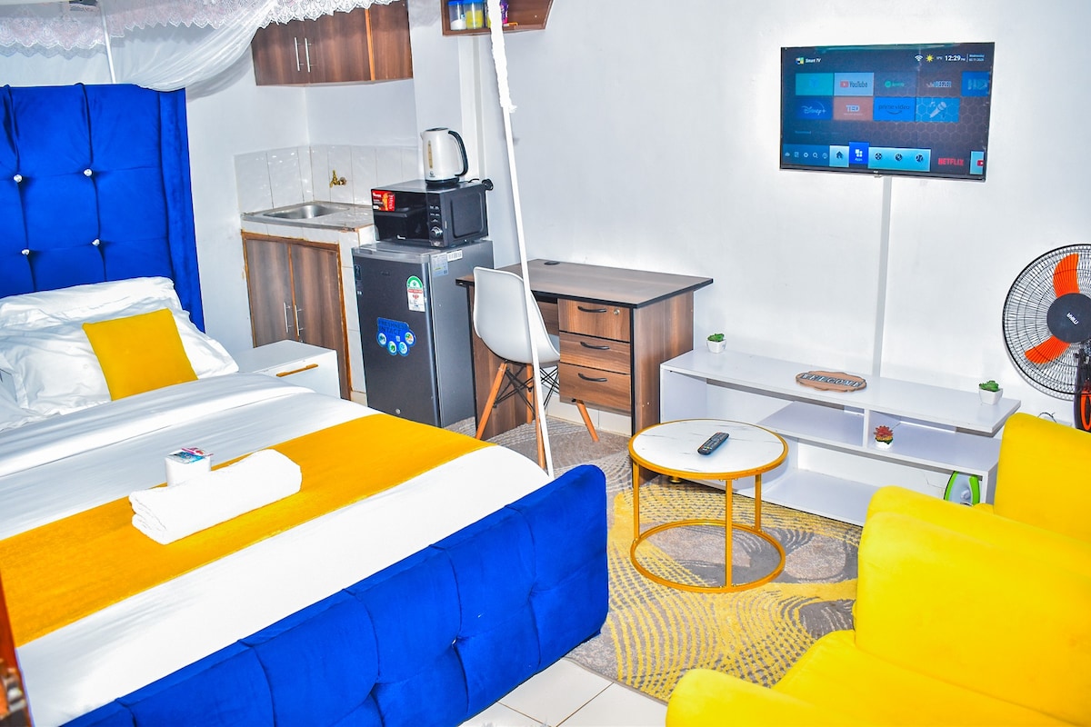 Laipni lūdzam mūsu stilīgajā BNB Nati Apartment - jūsu ideālajā ceļojumā! Pārdomāti iekārtots ar modernu dekoru un īpaši ērtu atsperu gultu mierīgām naktīm. Izbaudiet ātru Safaricom Wi-Fi, atpūtieties mierīgā telpā ar skaistiem skatiem un atpūtieties, zinot, ka atrodaties tikai dažu minūšu attālumā no lidostas un galvenā ceļa. Neatkarīgi no tā, vai esat šeit darba vai atpūtas nolūkos, mūsu atrašanās vieta ir neticami pieejama un ideāli piemērota, lai uzturēšanās noritētu bez raizēm.