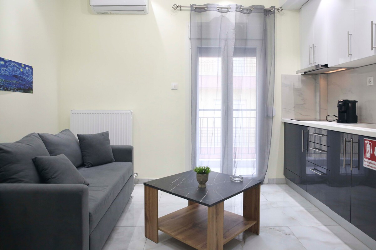 Unikāls 1 guļamistabas pilnībā aprīkots dzīvoklis 2020. gada renovētas ēkas 7. stāvā ar elpu aizraujošu terases balkonu. Ātrs internets, augstākās kvalitātes papildērtības, grezna divguļamā gulta un jūsu personīgais Netflix konts ir tikai dažas lietas, ko mēs jums piedāvājam. Apgaismots, plašs, ar visu nepieciešamo, lai izbaudītu uzturēšanos pašā Saloniku sociālās dzīves sirdī, tikai 5 minūšu attālumā no Aristotelous laukuma un 2 minūšu attālumā no jūras krasta. Laipni lūdzam un izbaudiet viesošanos!
