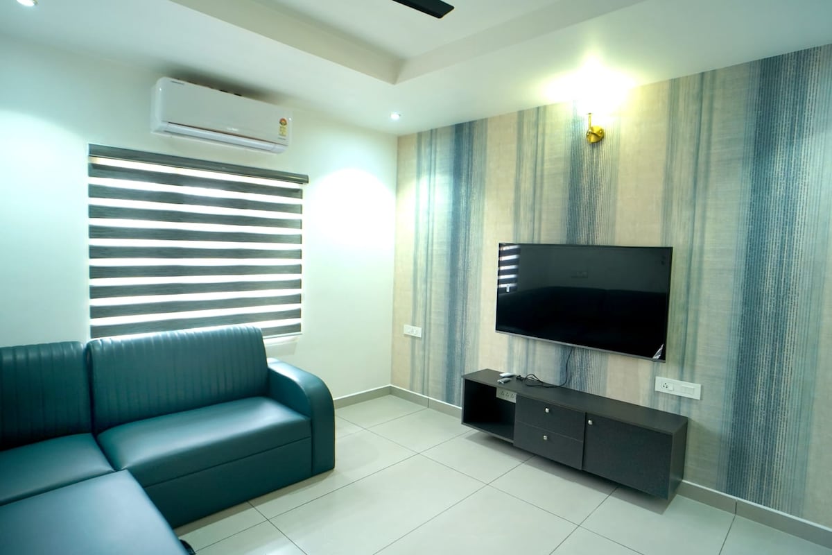 Pilnībā mēbelēts 3BHK mājoklis netālu no Kočinas starptautiskās lidostas - Nedumbassery. Divas galvenās guļamistabas ir aprīkotas ar "king" izmēra gultu un matraci ar gaisa kondicionētāju un vannasistabu. 1 istaba bez gaisa kondicionētāja ar divguļamo gultu un kopēju vannasistabu Pilnībā aprīkota virtuve ar mikroviļņu krāsni , ūdens attīrītāju ,ledusskapi, veļas mašīnu utt. Dzīvojamā zona un guļamistabas ir aprīkotas ar WIFI un Smart TV . Autostāvvieta līdz 5 transportlīdzekļiem