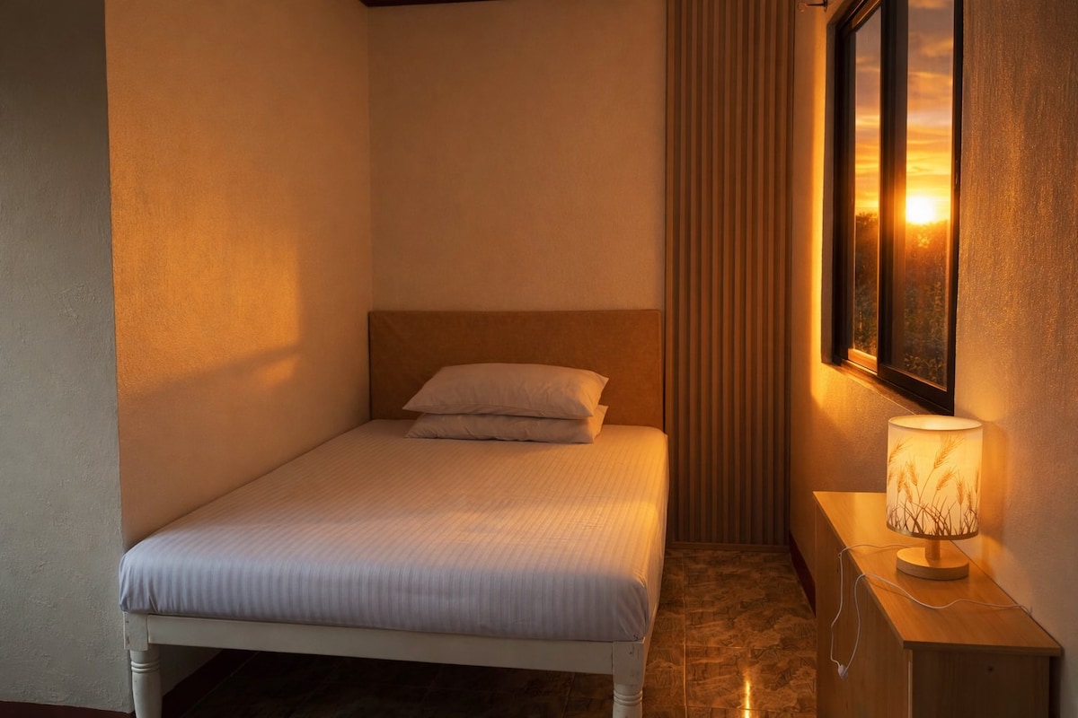 Mūsu viesu nams atrodas blakus kafejnīcai The Halfway Cafe Talinis kalna nogāzēs. No šīs vietas paveras iespaidīgs skats uz Visajas jūru uz Siquijor salu, Apo salu un skaidrā dienā līdz pat Mindanao. No aizmugures paveras skats uz pašu Talinis kalnu. Atrodoties samērā nomaļā vietā, jūs varat atpūsties un izbaudīt mieru un klusumu, kā arī labu svaiga gaisa devu. Ņemiet vērā, ka, lai gan telpas ir atdalītas, tās ir atvērtas, un tās nevar atsevišķi aizvērt vai aizslēgt.