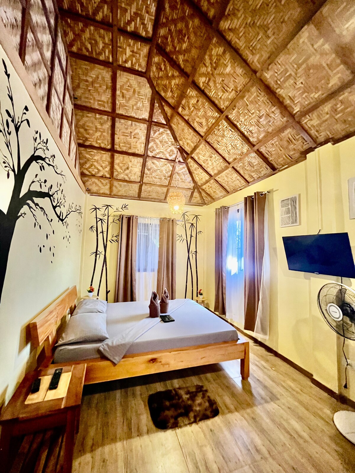 Īpašums atrodas ģimenes kompleksā. Tā atrodas starp tūristu pilsētām Moalboal un Badian. Liels, plašs zāliens ar mango kokiem un kokosriekstiem ap īpašumu, kas rada vēsu un relaksējošu atmosfēru pēc saspringtas aktivitāšu dienas. Istabā ir privāta vannasistaba, viedtelevīzija - Netflix gatava un Wi-Fi. Ir pieejams neliels ledusskapis, tosteris, tējkanna, kā arī dzeramais ūdens.